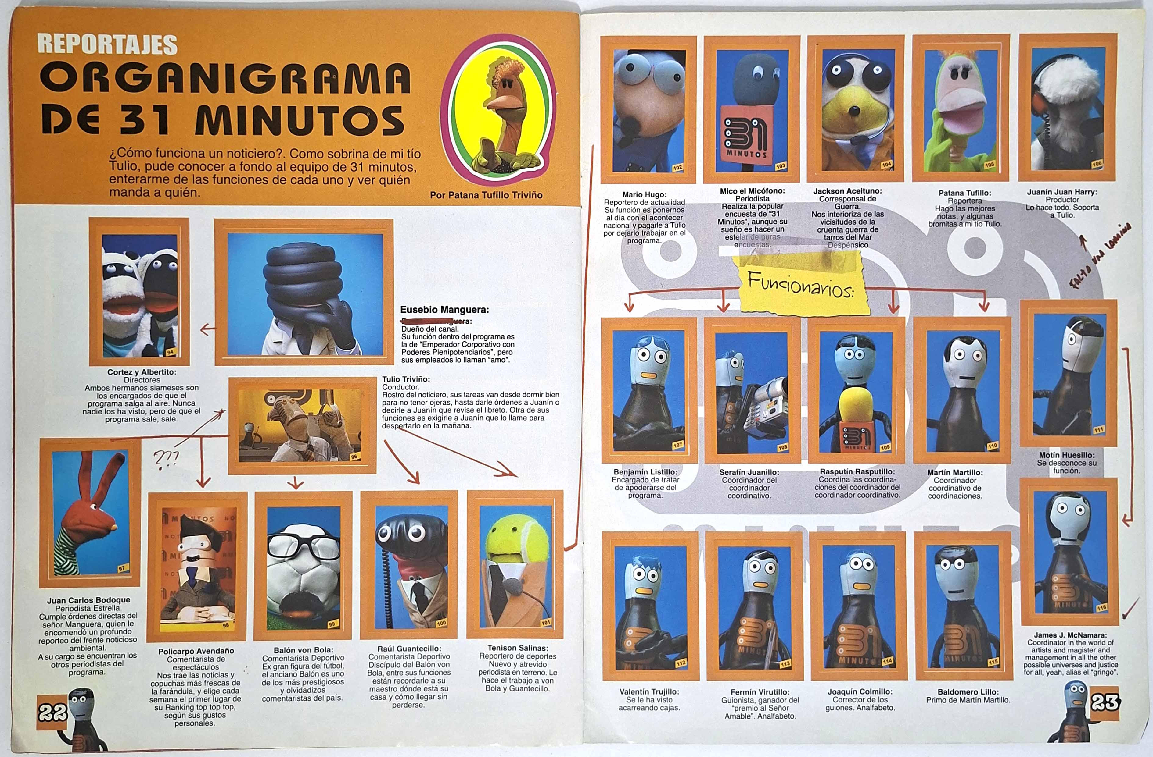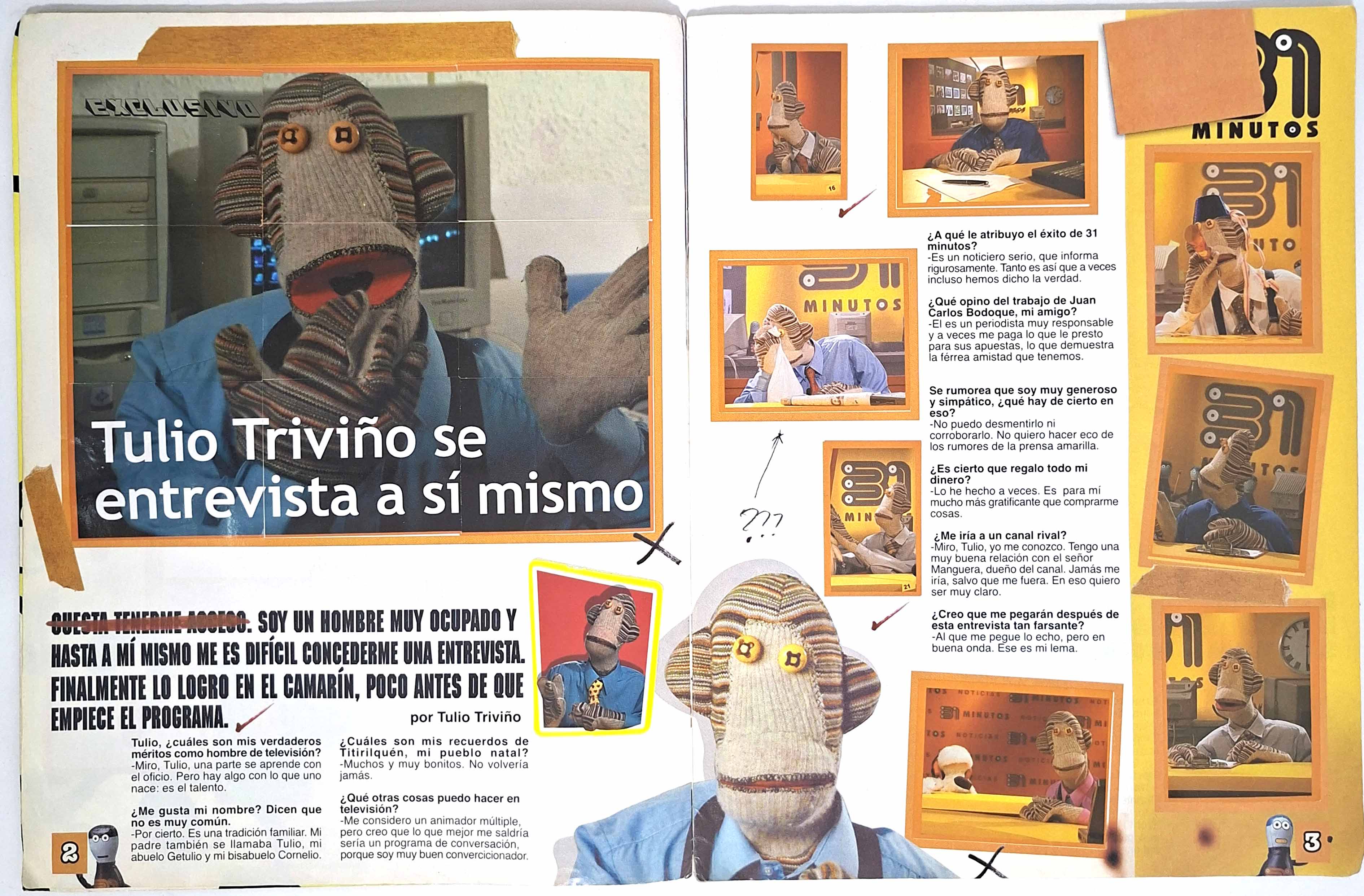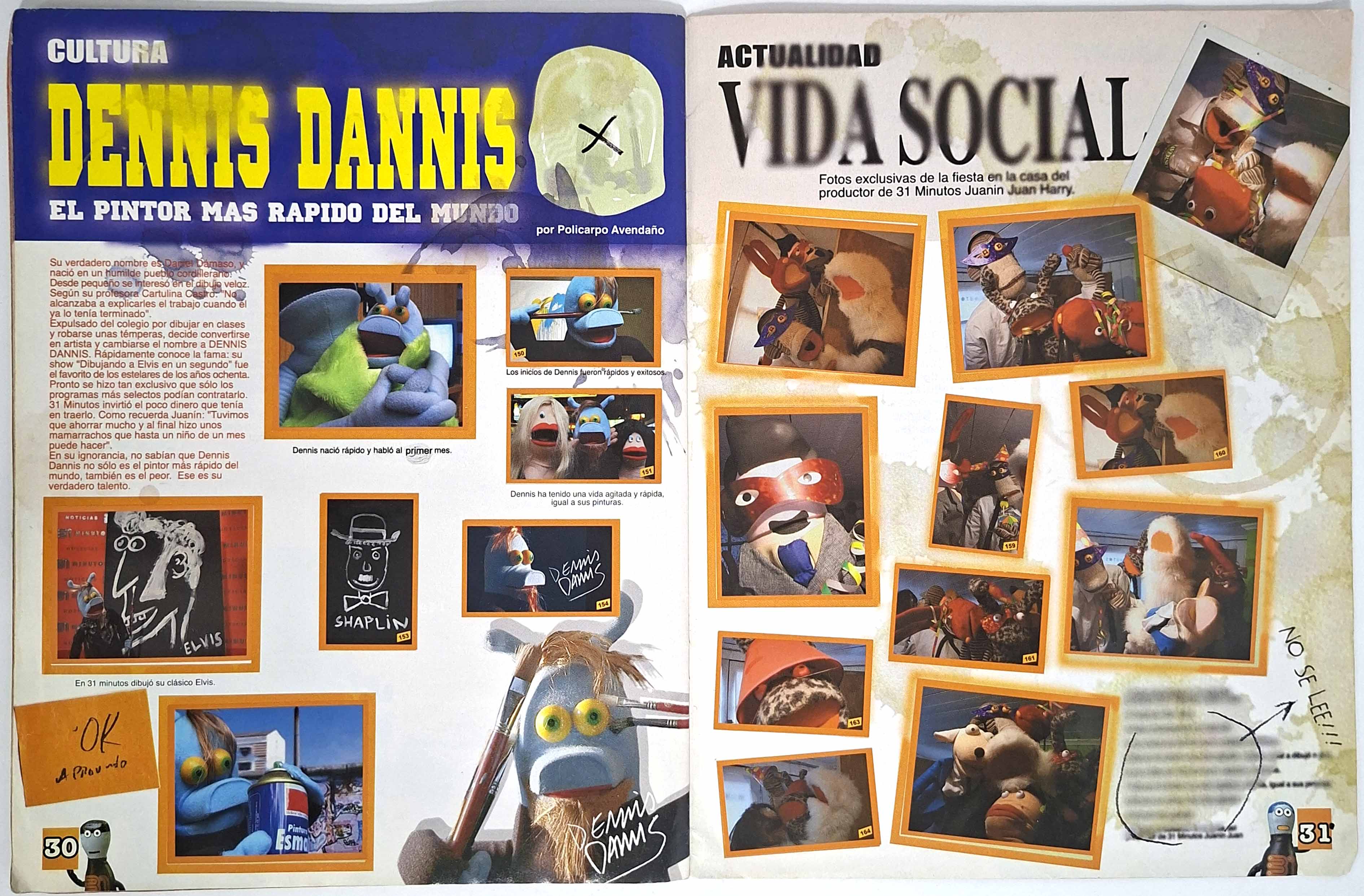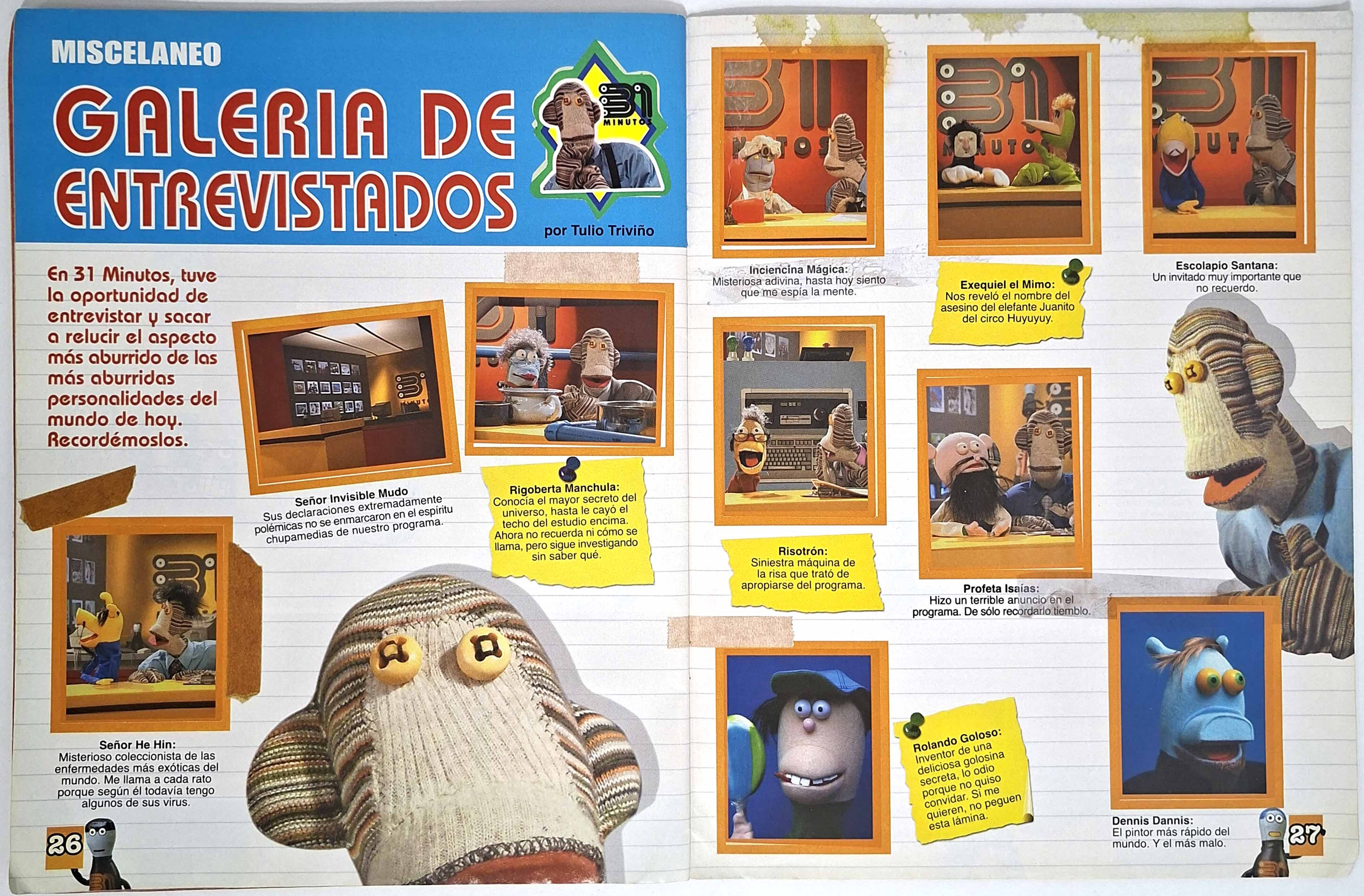 El álbum de láminas 31 Minutos La Revista Salo 2003 te invita a recorrer el mundo del noticiero más famoso. Cada página del álbum muestra el humor irreverente de Tulio Triviño, Juan Carlos Bodoque, Juanín y el Ranking Top Top, entre muchos más; cada sección del álbum nos muestra un pedacito del programa, haciendo que al hojearlo parezca tener su propia voz y música.
