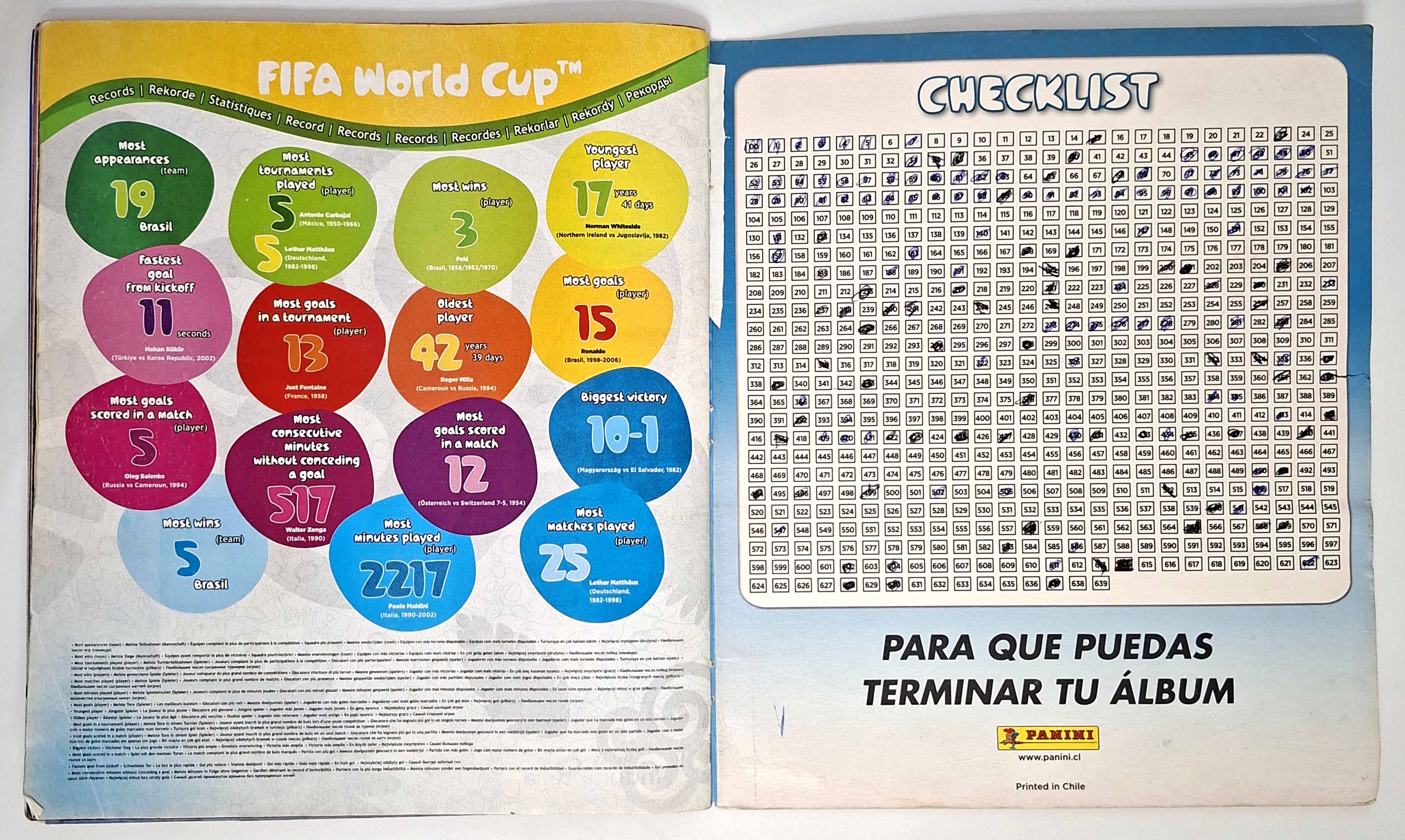• Cantidad de láminas: 492 pegadas de un total de 639; faltan 147
